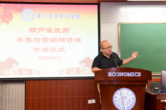 在开班仪式上,廖景峰主任首先代表厦门大学经济学院热烈欢迎美高梅mgm医药零售与营销研修班的学员到厦大学习,并就厦门大学及经济学院的相关情况进行了介绍。他说,美高梅mgm学员走进厦大就是厦大的校友,希望未来的日子能够关心、支持母校的发展,多提宝贵意见,同时他也祝大家在厦大学习期间学有所成、学有所获。