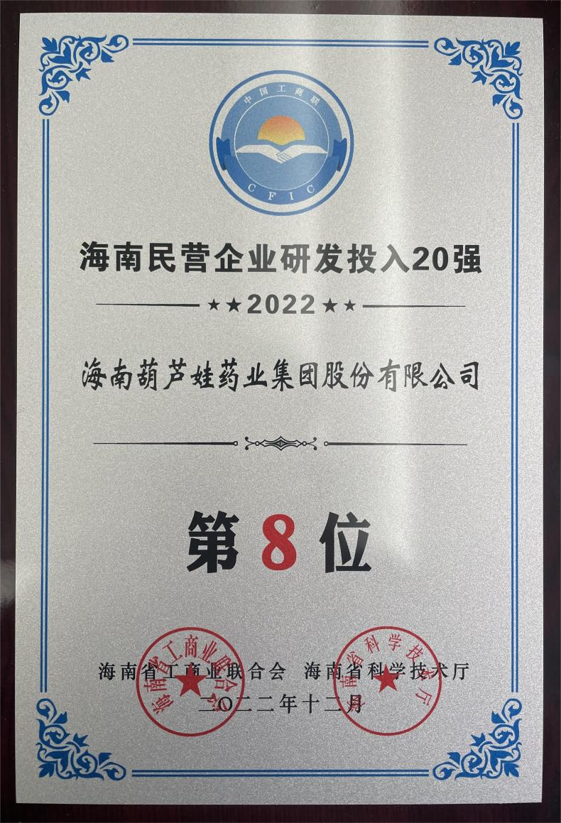 12月23日,2022海南民营企业50强和研发投入20强发布会在海口举行。会上发布了“2022海南民营企业50强”“2022海南民营企业研发投入20强”榜单和分析报告。美高梅mgm药业再次荣登两榜,在海南民营企业50强榜单中位列第25位,较去年上升8位,这也是公司连续三年登榜;在海南民营企业研发投入20强中位列第8位,较去年上升7位。