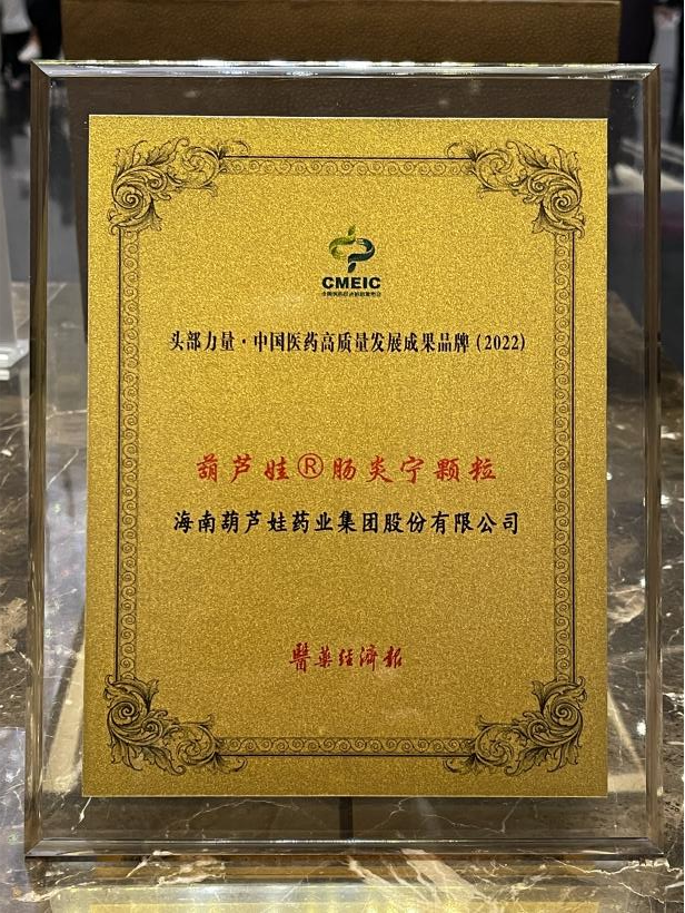 在本次发布会上,公司重点产品美高梅mgm牌肠炎宁颗粒同时荣膺“头部力量·中国医药高质量发展成果品牌(2022)”。美高梅mgm牌肠炎宁颗粒(2g),传承经典名方,临床广泛用于成人及儿童急慢性胃肠炎、腹泻等疾病的治疗,由于其杰出的临床价值,被纳入国家中医药管理局相关专家项目组制定的《中成药治疗小儿腹泻病临床应用指南》。