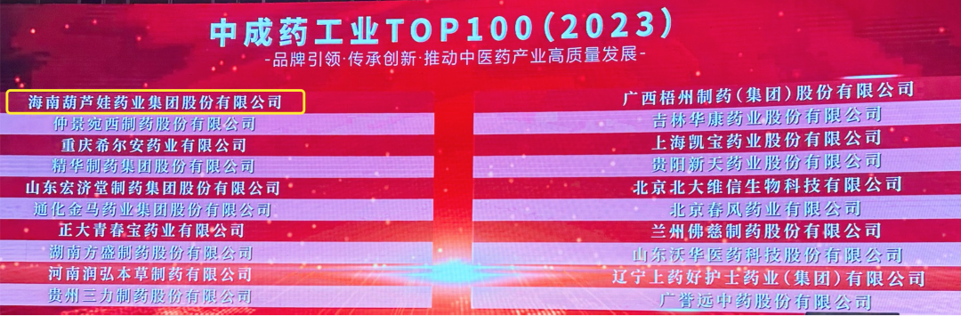 会上,还发布了“2023中成药工业TOP100”榜单,美高梅mgm药业集团荣耀上榜。