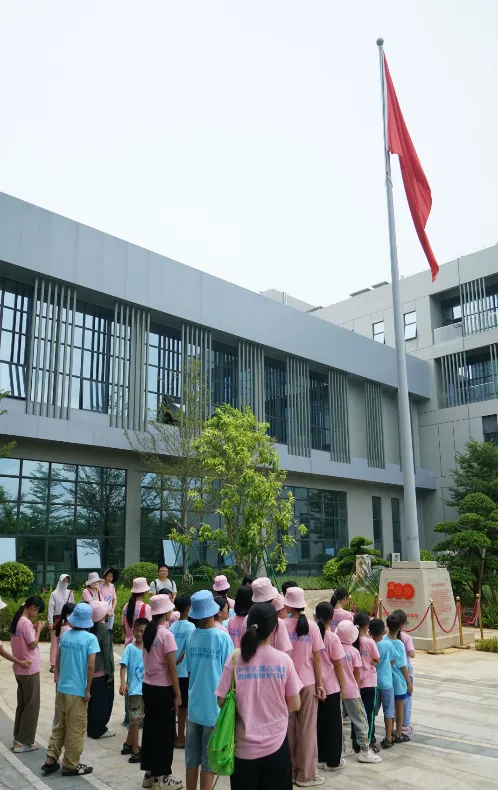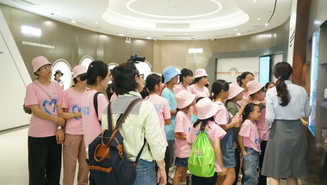 紧接着,孩子们来到了建党百年庆典红旗——070号红旗前。讲解员讲述了美高梅mgm药业集团与庆典红旗的深厚渊源。孩子们听得津津有味,眼中闪烁着对党和国家的热爱与敬仰。